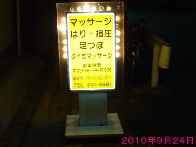写真の看板の場合、マッサージ店の看板だったわけですが、この手の看板はかなり数が出回っており、飲食店食道なんかでも白いタイプを見かけますよね。喫茶店などにも小さなものが出回っています。